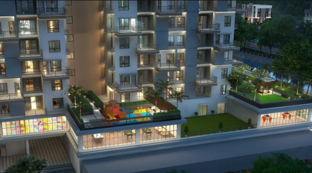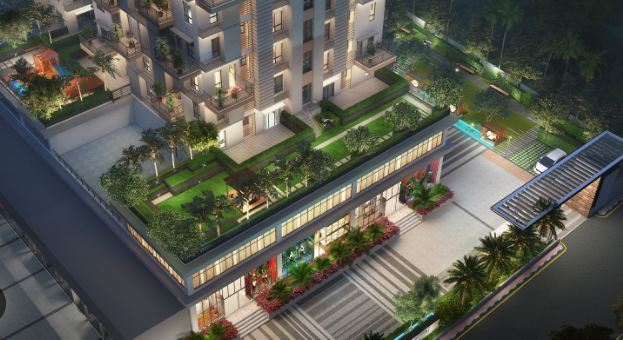 - Flushing system; Low VOC materials, Use of LED lights in Common areas; Use of Renewable energy